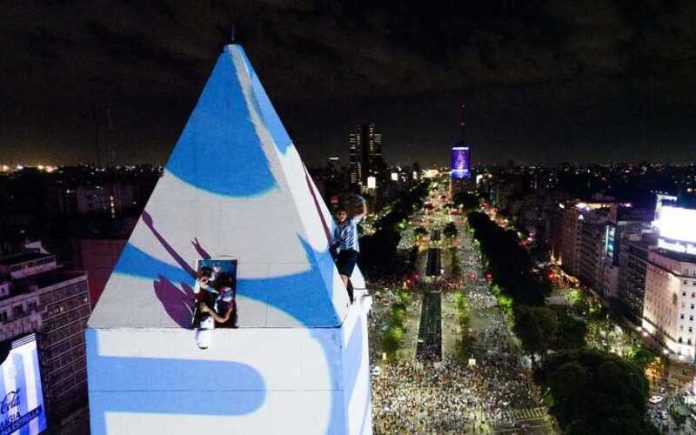 Na noite de domingo, em plena euforia pela conquista do Mundial, vários fãs argentinos decidiram subir ao topo do Obelisco, e colocaram-se em perigo de sofrer uma queda trágica.