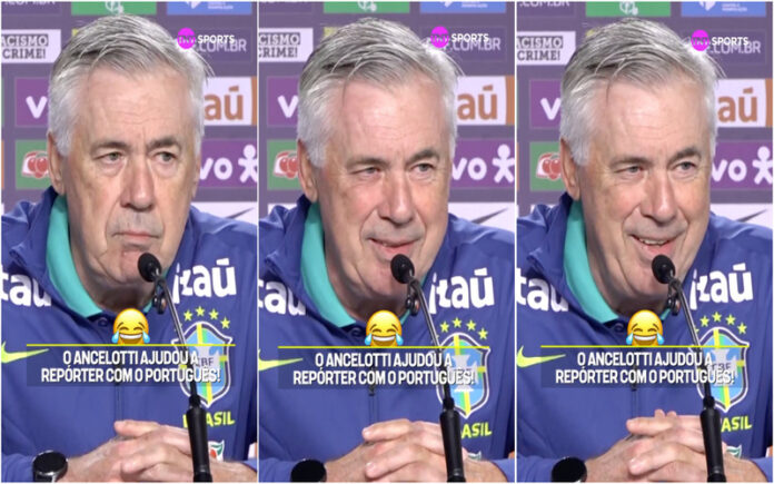 Carlo Ancelotti voltou a conquistar simpatias no Brasil, desta vez com um episódio insólito fora das quatro linhas. Durante a conferência de imprensa de antevisão ao jogo com a Bolívia, o treinador foi surpreendido pela jornalista japonesa Kiyomi Nakamura, que tentava formular uma questão em português.