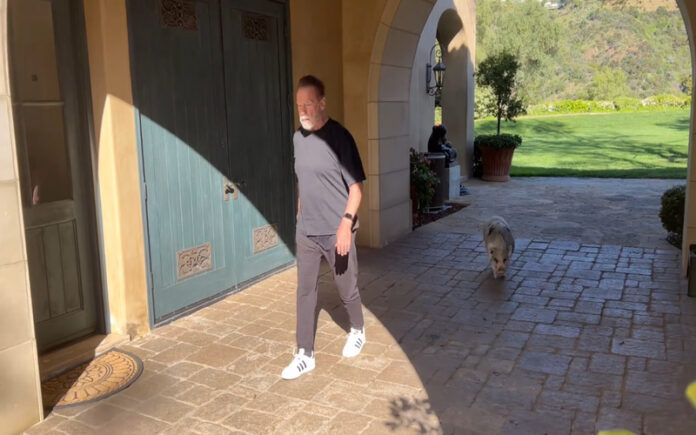 Num vídeo peculiar, Arnold Schwarzenegger passeia com o seu porco de estimação, incentivando a prática de caminhadas.