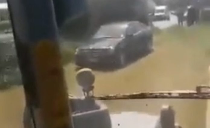 O agricultor inglês estava a estrumar o seu terreno e aproveitou para deixar a sua marca no Mercedes ali estacionado.