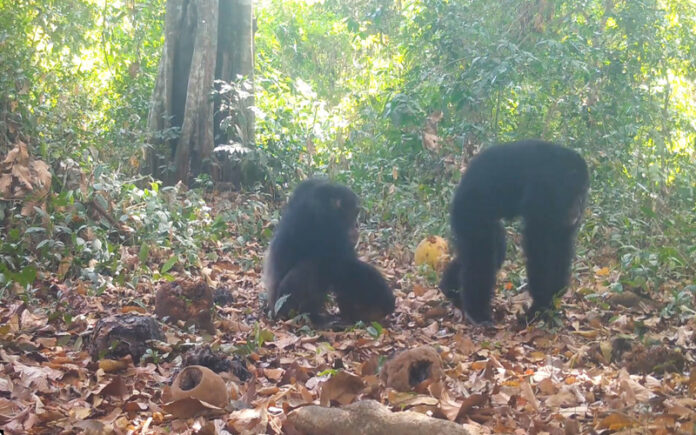 Pela primeira vez, essas imagens foram registadas através de câmaras de movimento, revelando comportamentos sociais inusitados. Os chimpanzés estavam a comer fruta-pão africana, que fermenta naturalmente e contém etanol, numa prática observada em dez ocasiões.