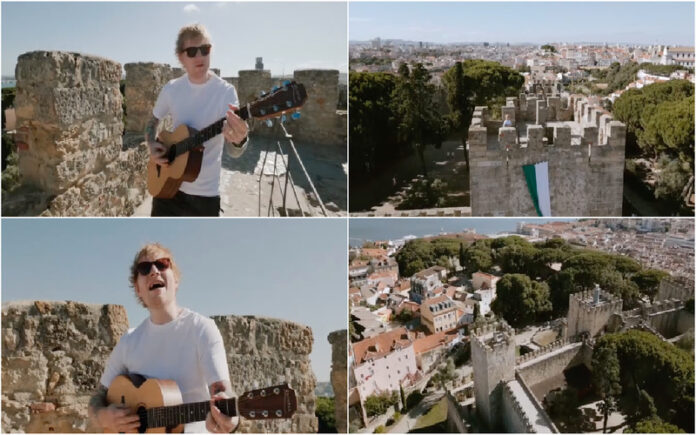 Em um vídeo no Instagram, o cantor britânico expressou entusiasmo pela vista deslumbrante do castelo: “Acabei de aterrar em Lisboa e há aqui um castelo numa colina, por isso, só há uma coisa que podemos fazer”. Durante a atuação, Sheeran foi acompanhado por uma gaivota, brincando com a situação.
