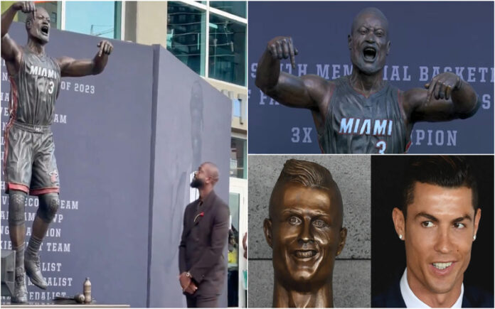 Durante a cerimónia de homenagem ao lendário base dos Miami Heat, Dwyane Wade, o público e o próprio jogador foram surpreendidos por uma estátua que pouco se assemelhava ao ícone da NBA. A escultura de 2,4 metros, revelada em frente ao Kaseya Center, gerou reações imediatas, com Wade brincando: “Quem é aquele tipo?”
