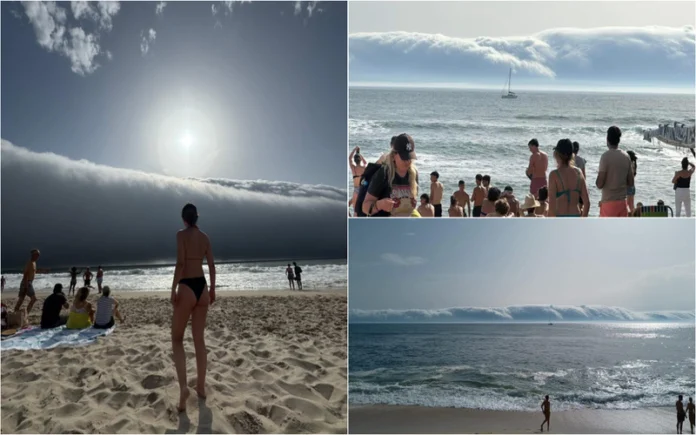 O passado domingo ficou marcado por um espectáculo meteorológico que deixou banhistas boquiabertos nas praias portuguesas. Uma imensa nuvem rolo, baixa e cilíndrica, estendeu-se ao longo do horizonte, parecendo quase uma onda gigante prestes a engolir o areal.