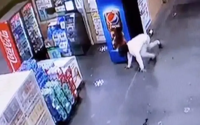 Este homem bêbedo inspirou-se no filme Missão Impossível para roubar bebidas de um posto de gasolina. Parecia um verdadeiro ninja, a arrastar-se pelo chão e a trepar para a arca das bebidas.