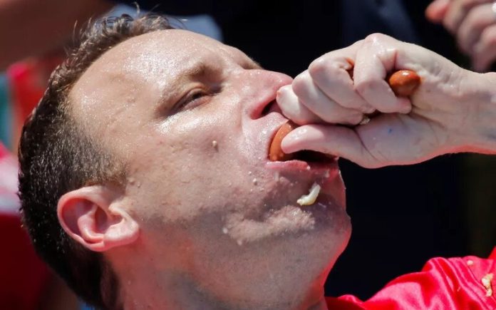 Joey Chestnut sagrou-se campeão pela quarta vez consecutiva de quem come mais hot dogs. Porém, ele não conseguiu bater o próprio recorde.