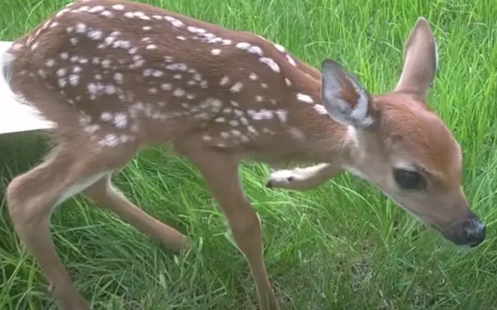 Este homem resgatou uma corça bebé que tinha problemas numa pata e havia sido deixada para trás pela mãe. Ele tratou da pequenina que até fez amigos lá em casa.