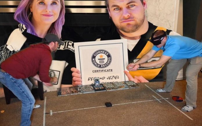 A tentativa mais recente da dupla, que contou com Hannon a jogar os dados e com Rush a apanhá-los com uma venda nos olhos, terminou com 656 dados conseguidos, o suficiente para conquistar o recorde de Bec e Jeziel de 433.