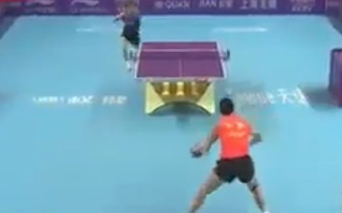Foi o caso deste ponto de Xu Xin e Zhu Linfeng. Os lances eram tão rápidos que.muitas vezes, nem se via onde estava a bola.