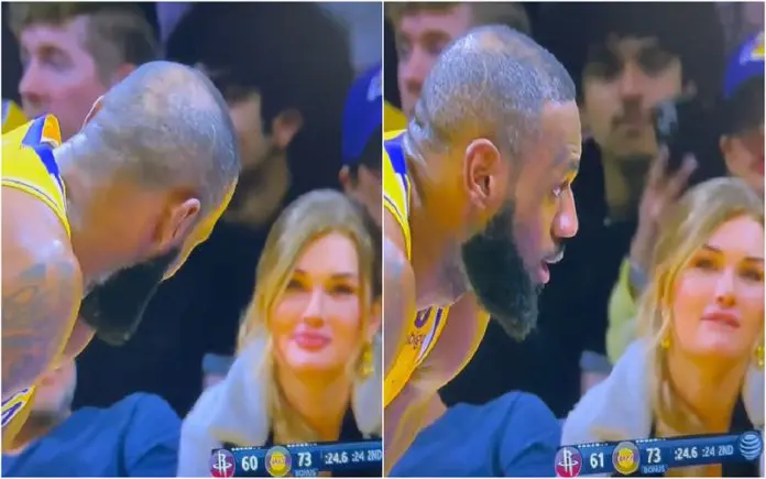 Sophie O’Neill, uma modelo e influencer britânica, assistiu na primeira fila ao jogo entre Lakers e Houston Rockets e tentou de tudo para que o “KING” da NBA repara-se na sua presença.