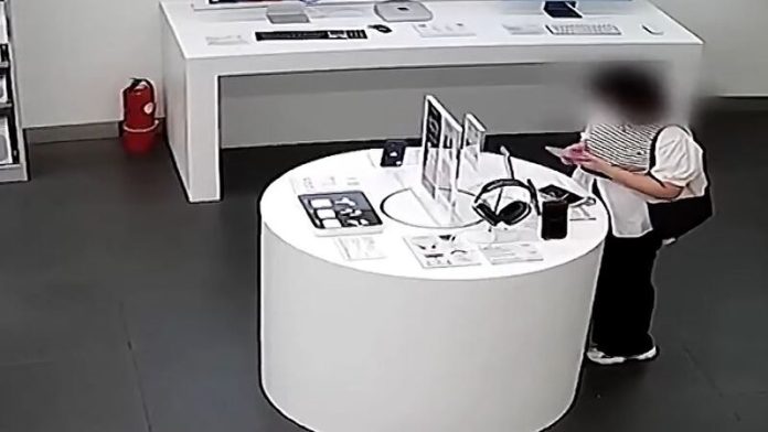Sabemos que as lojas têm sistemas de segurança e que algumas pessoas arriscam roubar, mas o que não imaginávamos era que uma mulher era capaz de usar a boca para partir um cabo.