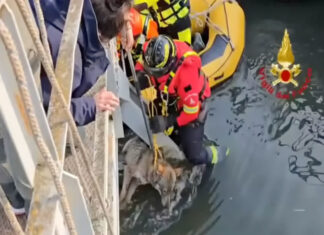 Lobo é salvo de situação perigosa debaixo de ponte em Itália