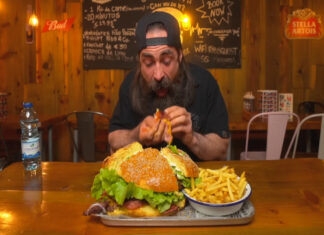 Adam Moran vence desafio de hambúrguer gigante em restaurante português