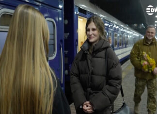 Soldado ucraniano surpreende esposa em Kiev no Dia dos Namorados