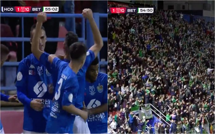Mesmo com a derrota esmagadora, a equipa adversária conseguiu marcar um golo, e os adeptos do Betis celebraram o feito com aplausos e entusiasmo.