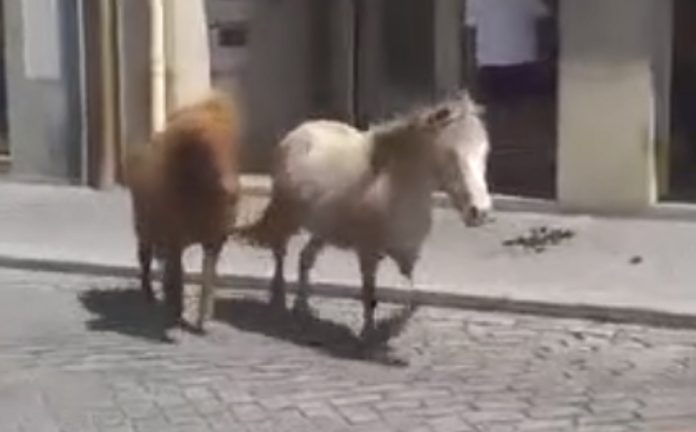 Dois póneis foram vistos a passear no centro de Fafe e tentaram entrar em várias lojas, inclusive numa farmácia.