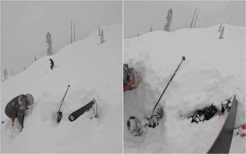 Resgate milagroso esquiador soterrado salvo ao serem vistas apenas as pontas dos esquis