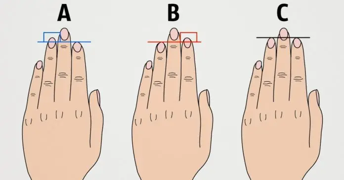 Na imagem abaixo existem 3 tipos de comprimentos dos dedos: A, B e C. Veja qual é o seu e entenda o significado logo a seguir.