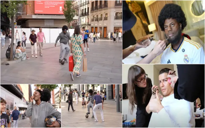 O streamer americano mais famoso atualmente conhecido por Speed recriou o vídeo viral de Cristiano Ronaldo que há 8 anos se vestiu de mendigo e foi para as ruas de Madrid surpreender as pessoas ao fazer algumas habilidades com a bola.