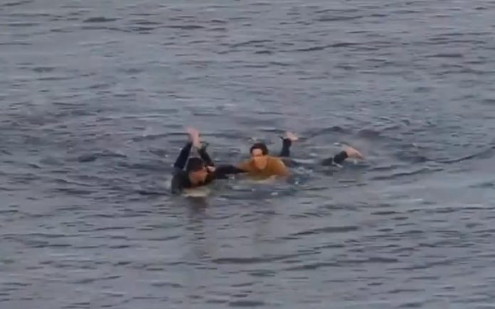 Em Bells Beach, na Austrália, um surfista escapou quase que ileso de um ataque de um tubarão a socos.