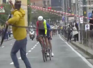 Tensão na Volta a Itália: Homem tenta derrubar pelotão e quase provoca acidente