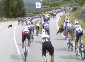 Cabra interrompe Giro e ciclista faz malabarismo para evitar queda