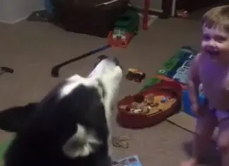 Este bebé conversou, pela primeira vez, com o seu cão husky, e parece que se entenderam perfeitamente. O momento é tão fofo que não tardou...