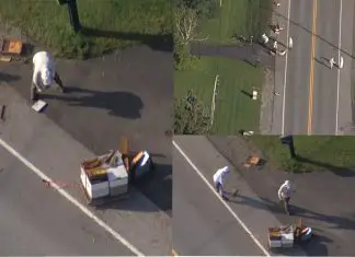 Um grupo de ciclistas na Carolina do Norte capturou um vídeo de seu encontro incomum com uma família de ursos que atravessavam uma estrada.