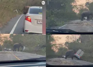 Elefante enfurecido derruba camioneta porque o condutor “recusou esperar que ele atravessasse a estrada”