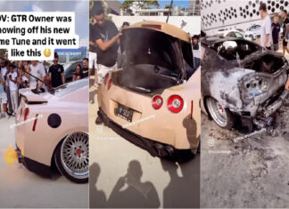 Nissan GTR destruído em evento de tuning após acidente com “lança-chamas”