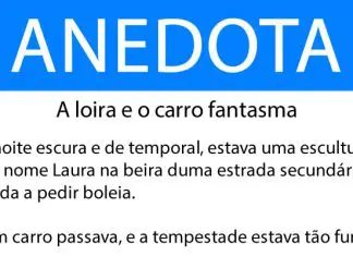 Numa noite escura e de temporal, estava uma escultural loira de nome Laura na beira duma estrada secundária mal iluminada a pedir boleia.
