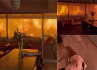 Um vídeo dramático capturou dois homens e um cão presos numa casa cercada por incêndios em Pacific Palisades, Los Angeles. A gravação, partilhada por...