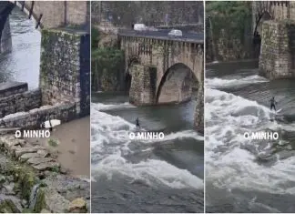 Homem é visto a surfar no Rio Cávado em Barcelos