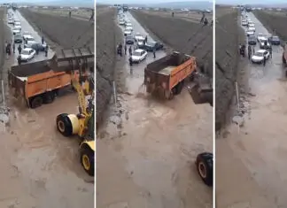 Um vídeo viral nas redes sociais revela engenheiros iranianos a enfrentar uma inundação em uma estrada. O que realmente deixou muitos de boca aberta...