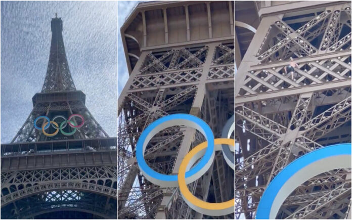 O indivíduo, sem camisola, foi visto a escalar a torre de 330 metros de altura, com imagens partilhadas nas redes sociais a mostrar o homem acima dos anéis olímpicos que decoravam a torre. O incidente ocorreu durante a tarde, levando as autoridades a evacuar a área por volta das 15h00 locais (14h00 em Lisboa).